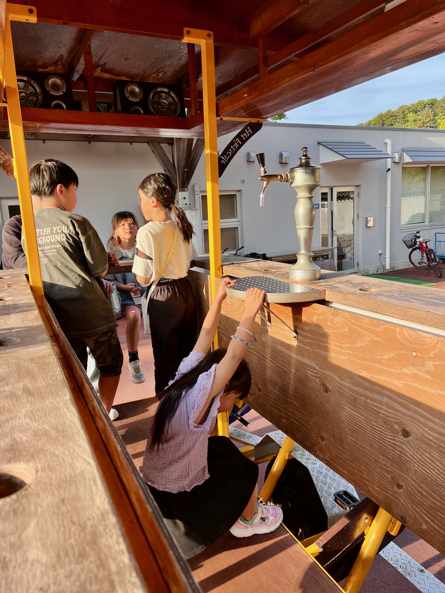 開演ダッシュして一番乗りでおもしろ自転車に乗りました。