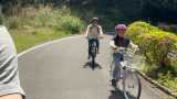 (スマホを構えて自転車を運転するとめいさんに怒られるので、写真は別の家族です)