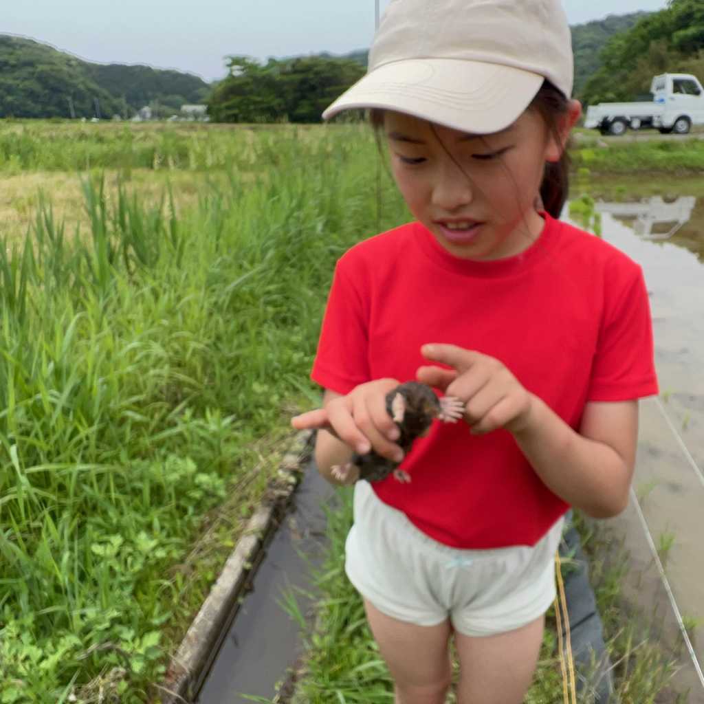田植え作業が始まる前、めいさんが「小さいイノシシが溺れている」と言っていたので、見てみたらモグラさんでした。