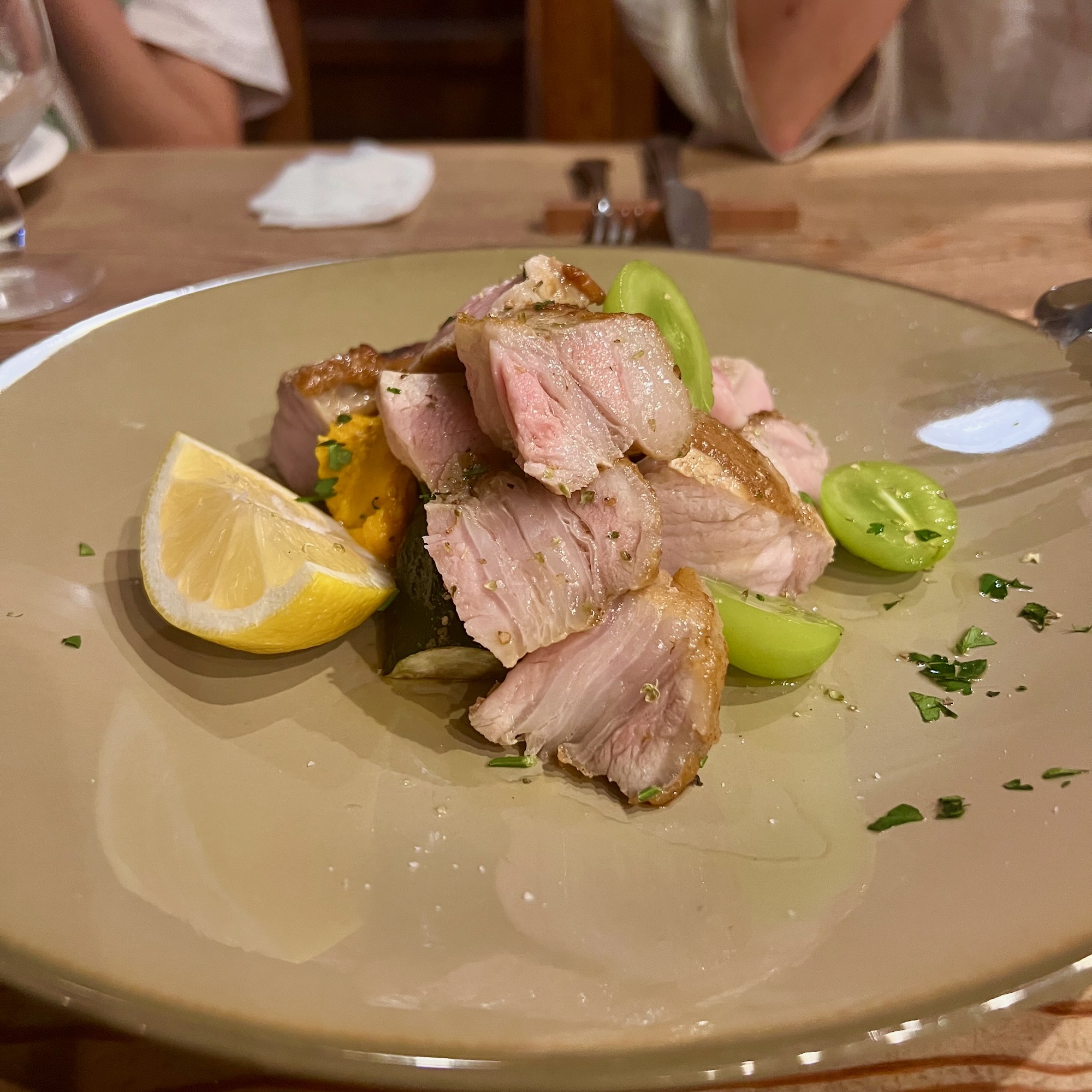 天城黒豚肩ロースの薪窯焼きブルーベリーソース
