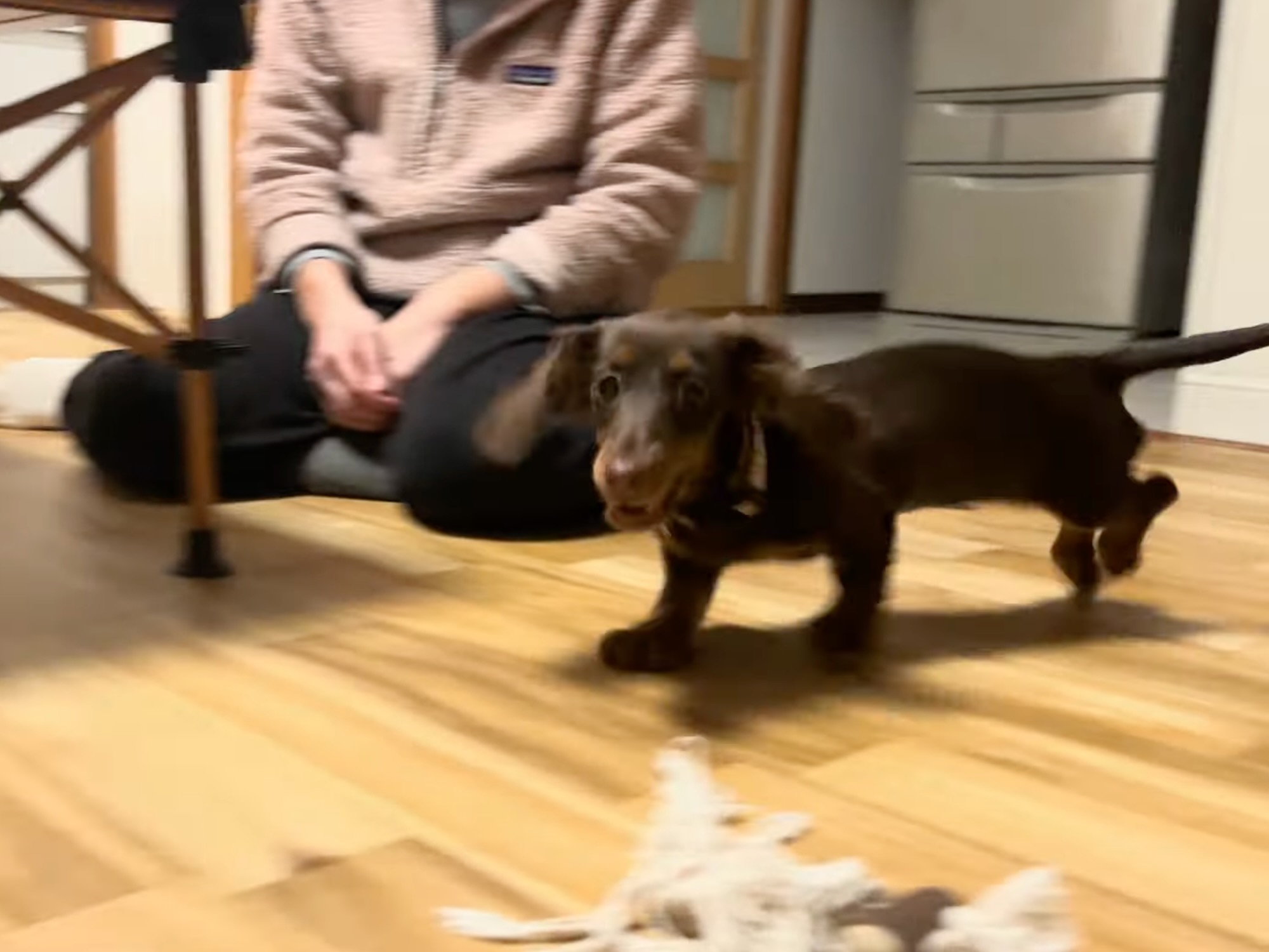 クッションマットではしゃぐチョコちゃん