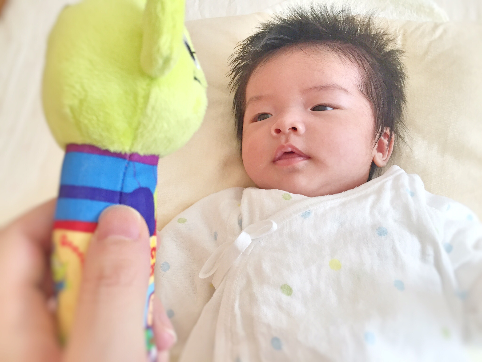 今日は市のサービスで、助産師さんが家に来て下さいました。めいさんの体重測定もしてもらいました。めいさんは4200gに成長していました。これからもすくすく育ってね。写真は今朝、お目覚め後ご機嫌なめいさんです。
