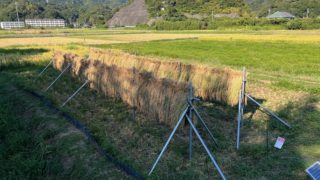 9/7(日)から9/9(火)の3日間、稲刈りをしてきました。9/5(金)の台風で少しだけ稲が倒れていましたが、概ね良さそうなできでした。今年ははざかけ棒を設置しました。3日目、刈り取りが終了。全部干せました。
